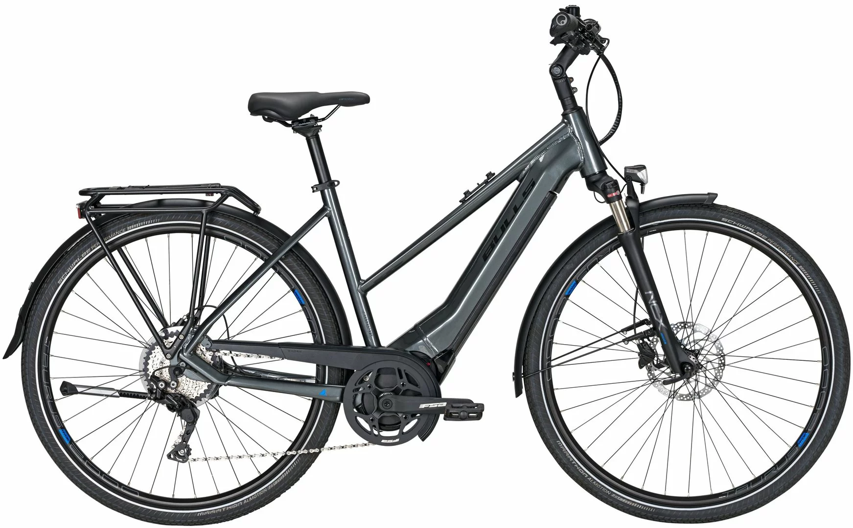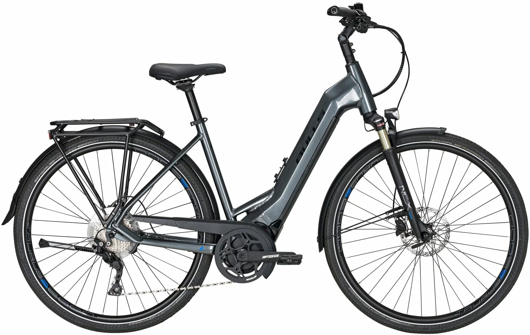 Hydroforming Alu-Rahmen mit Tapered Steuerrohr, NCX-D-LO-Air Federgabel, Deore Schaltwerk, Schalthebel, Naben und Zahnkranz (11-42 Zähne), Shimano MT200 Disc-Bremsen (160/180mm), Ryde Taurus 2000 Disc Felgen, Brose Drive-S Mag Mittelmotor 250W / bis 90Nm, 555Wh oder 750Wh Akku (Aufpreis), Beleuchtung über den Akku, 70 Lux Lampe, großes TFT-Display, Marathon Almotion Reifen 50-622, verstellbarer Vorbau, Ergon Griffe
