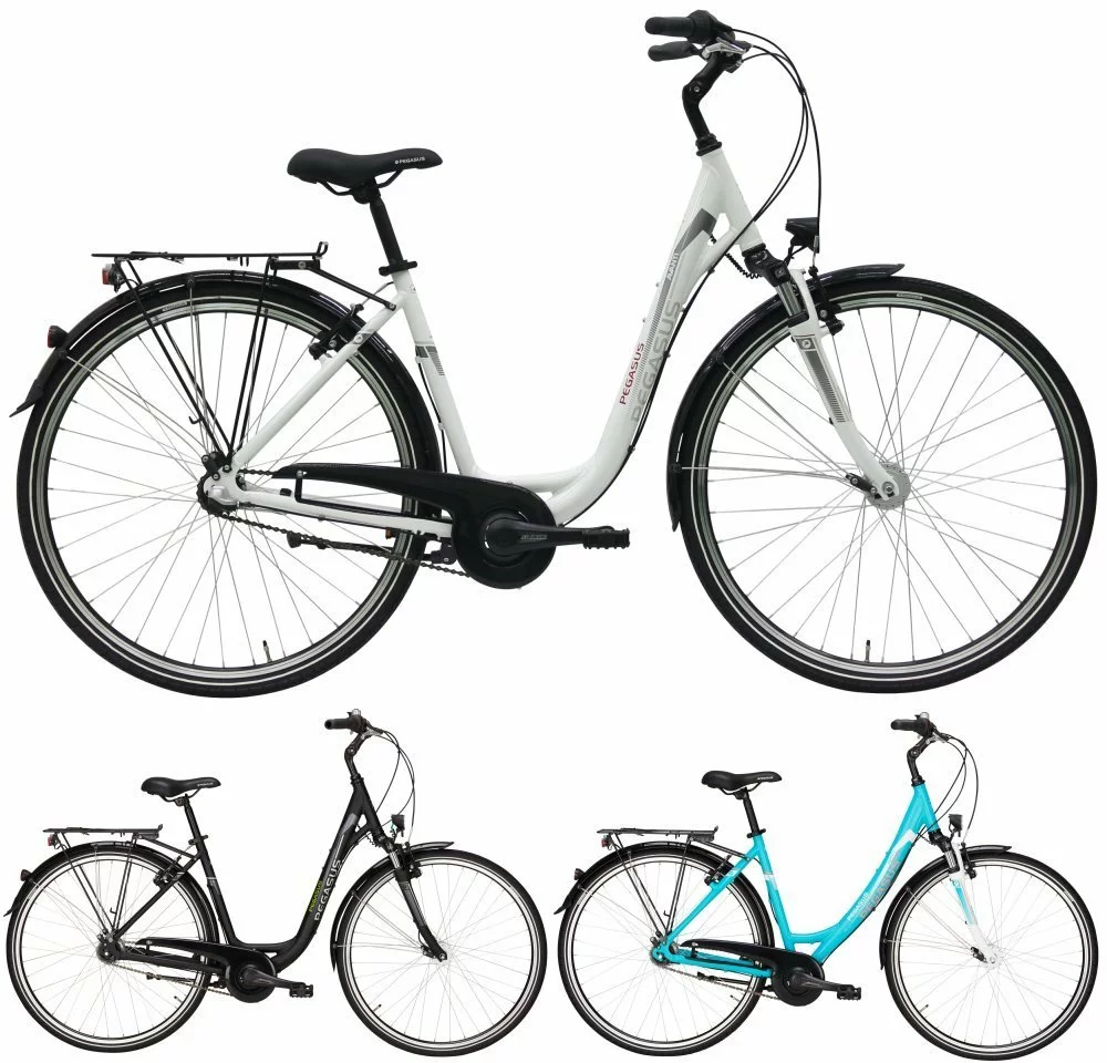 Alu Rahmen, Suntour CR-100 Federgabel, Shimano Nexus Nabenschaltung mit Rücktritt und Drehgriff, Alu V-Bremsen, Alu Kurbeln, Alu Hohlkammer-Felgen, verstellb. Vorbau, Nabendynamo, LED-Lampe, Standrücklicht, Alu Gepäckträger