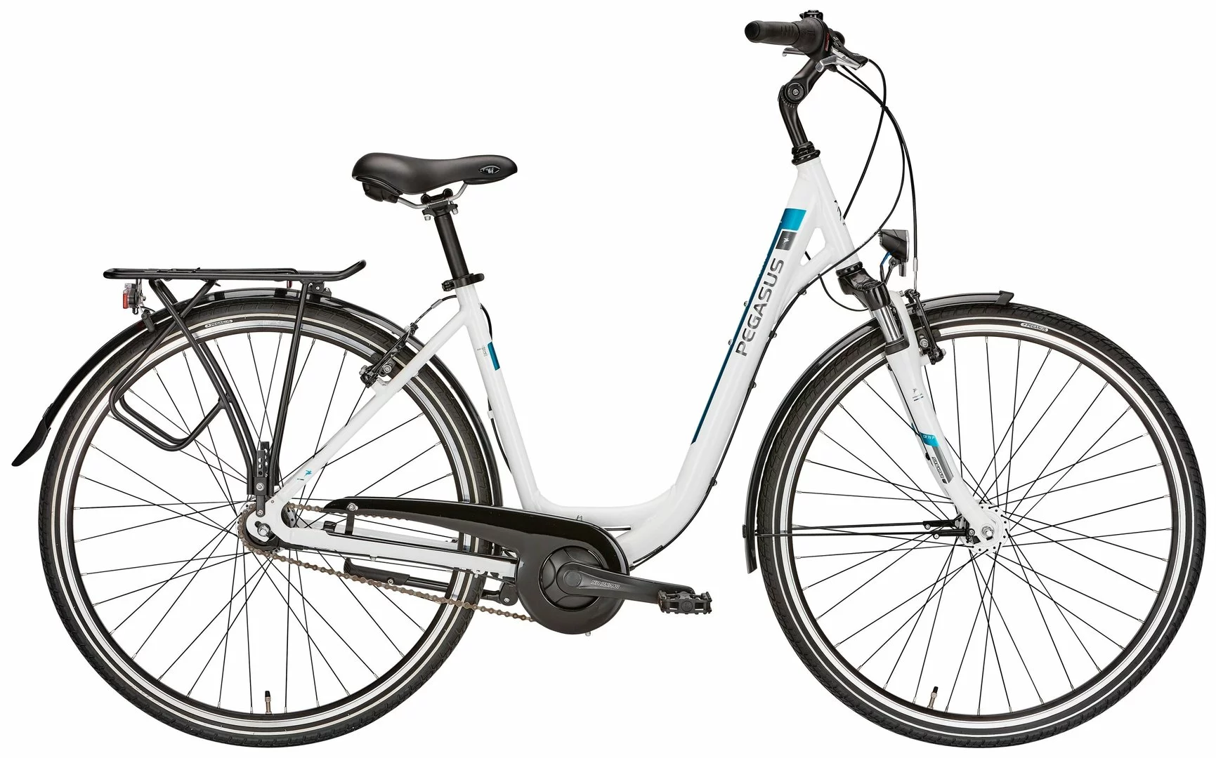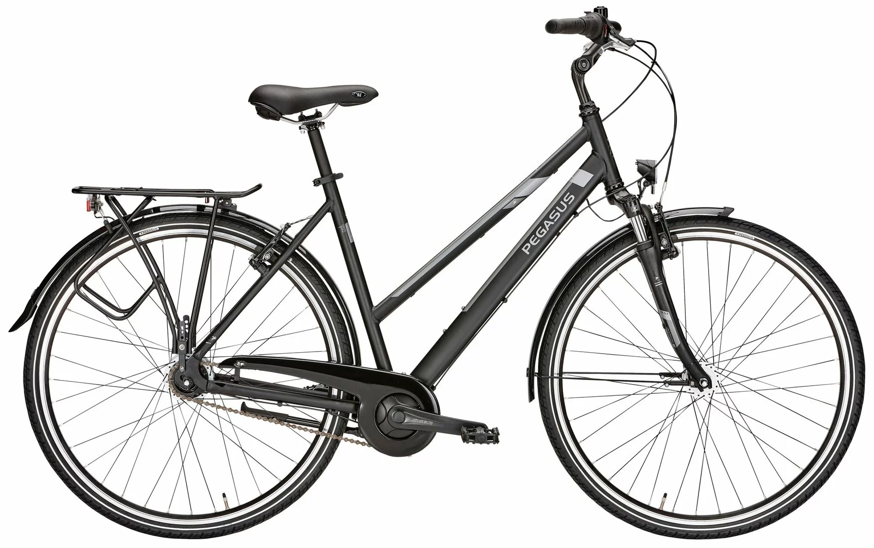 Alu Rahmen, Suntour CR-7V Federgabel, Shimano Nexus Nabenschaltung mit Rücktritt und Drehgriff, Tektro V-Bremsen, Suntour Alu Kurbeln, DBM-2 Alu Hohlkammer-Felgen, verstellbarer Vorbau, Nexus Nabendynamo, 15 Lux LED-Lampe, Standrücklicht, Selle Royal Freeway Sattel, I-Rack Gepäckträger, einstellbarer Seitenständer