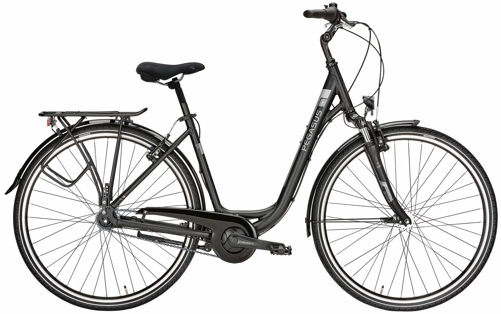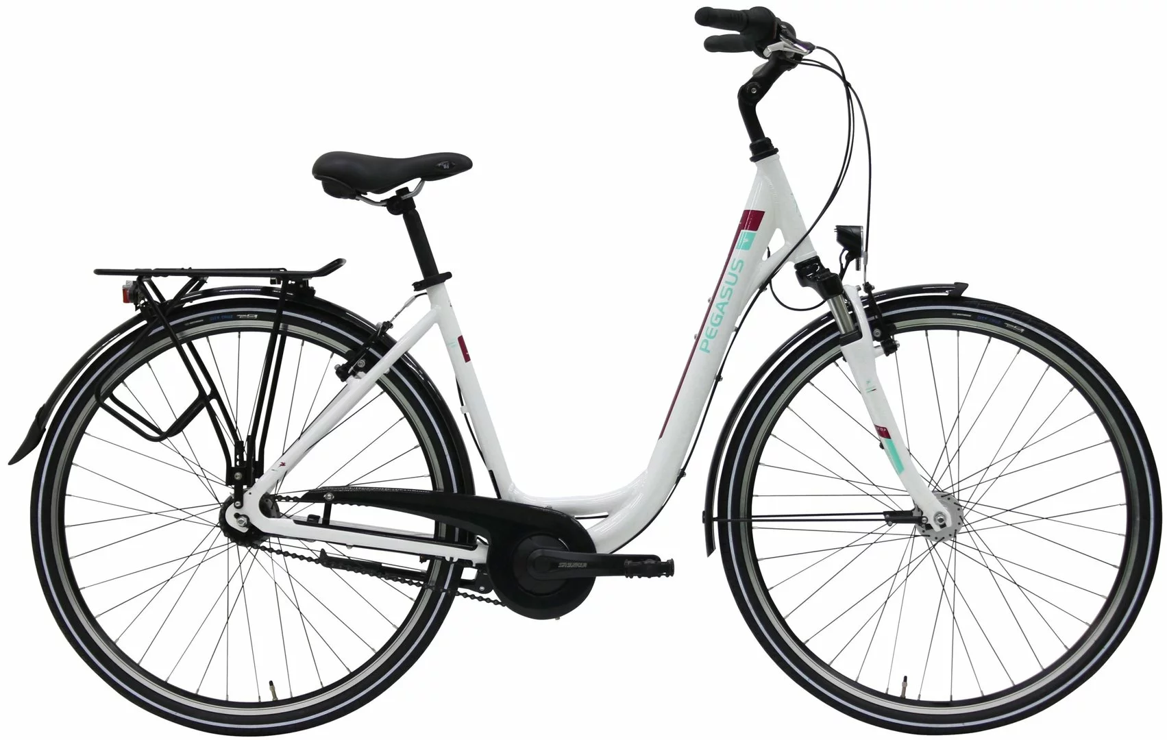 Alu Rahmen, Suntour CR-7V Federgabel, Shimano Nexus Nabenschaltung mit Rücktritt und Drehgriff, Tektro V-Bremsen, Suntour Alu Kurbeln, DBM-2 Alu Hohlkammer-Felgen, verstellbarer Vorbau, Nexus Nabendynamo, 15 Lux LED-Lampe, Standrücklicht, Selle Royal Freeway Sattel, I-Rack Gepäckträger, einstellbarer Seitenständer