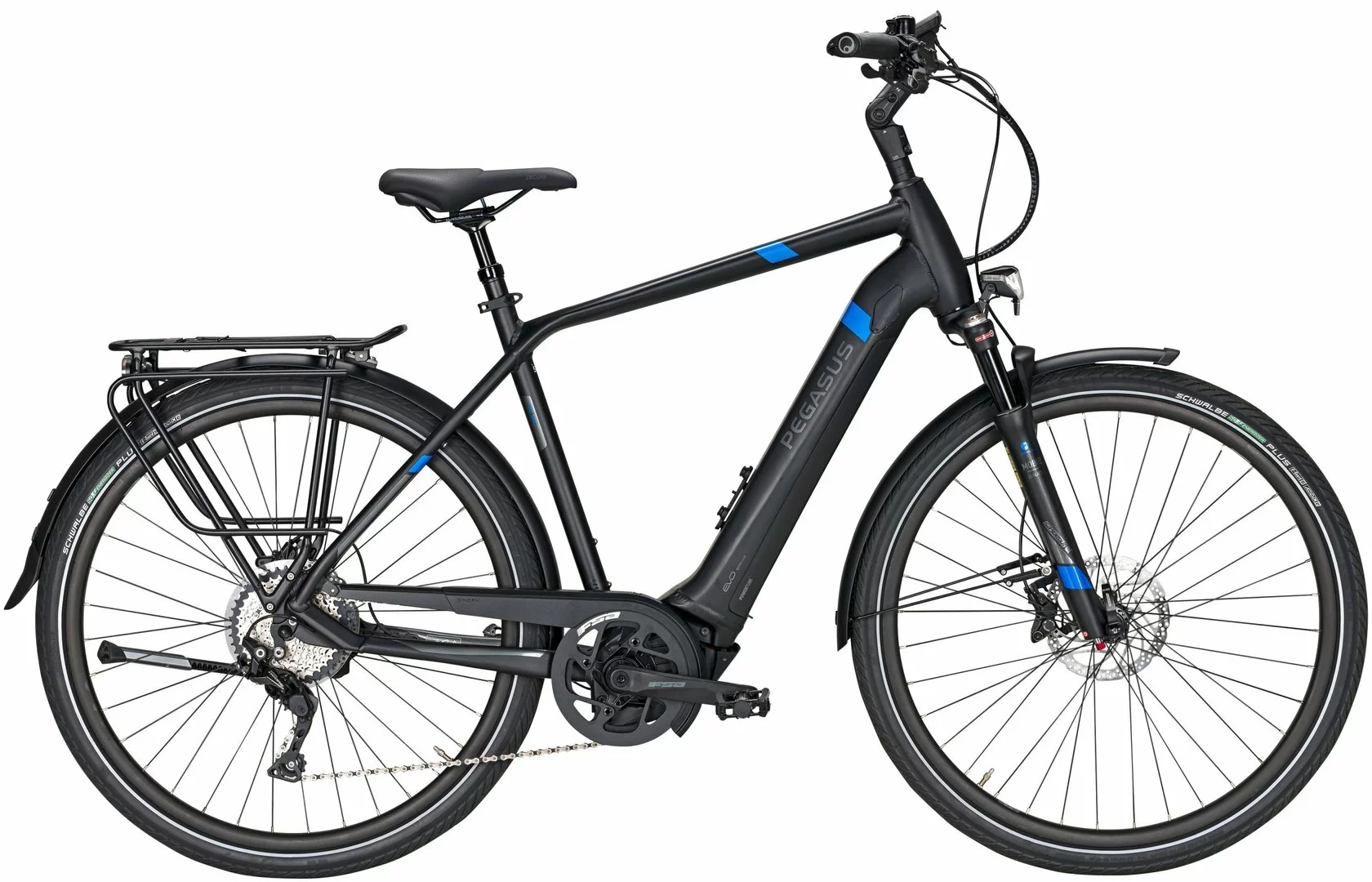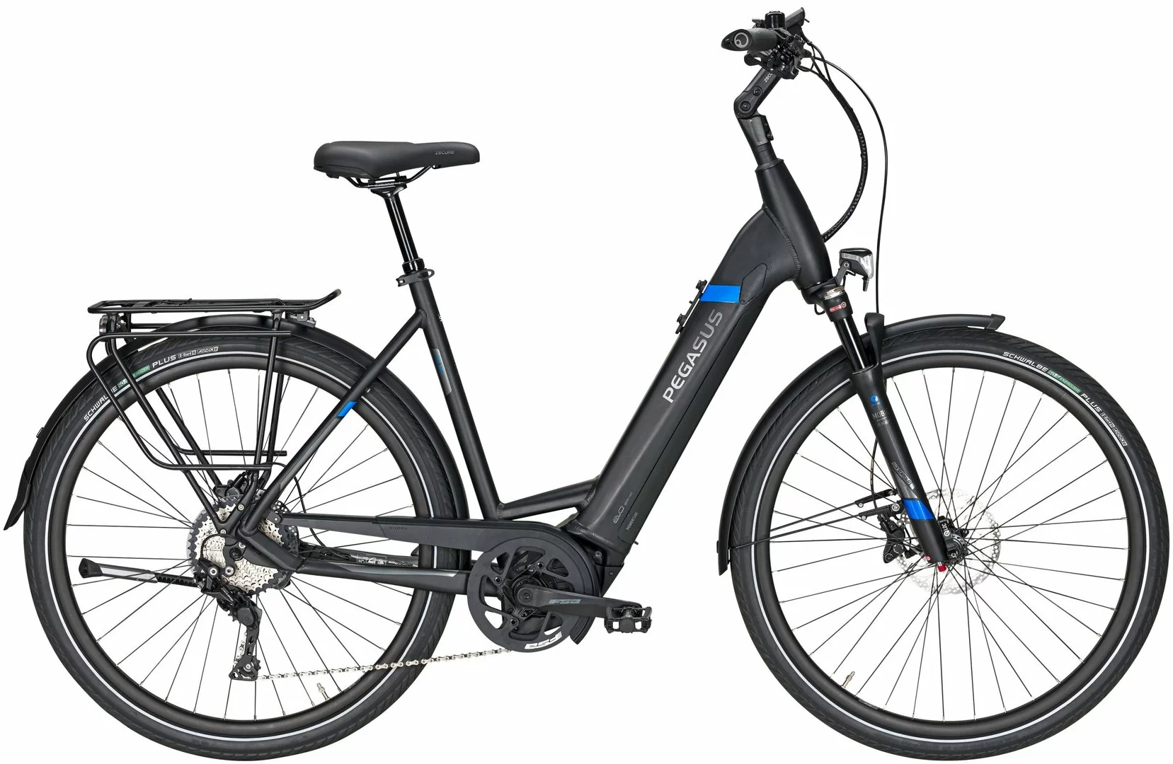 Hydroforming 7005 Alu-Rahmen mit Tapered Steuerrohr, Mobie-HLO Federgabel, Deore 10-Gang Schaltwerk, Schalthebel und Zahnkranz (11-42), MT-420/400 Scheibenbremsen mit 180mm Bremsscheiben, Andra-25 Hohlkammerfelgen, Bosch Performanceline-CX Mittelmotor 250W/75Nm, integrierter 400Wh (Serie), 500Wh oder 625Wh Akku (Aufpreis) Akku, Schwalbe Energizer Plus Reifen (50-622), Fuxon F-250 LED-Lampe mit 100 Lux, 12 Volt Lichtanlage, Zecure Sattel, verstellbarer UP-Vorbau, Jovial absenkbare Sattelstütze. Zulässiges Gesamtgewicht: 180kg